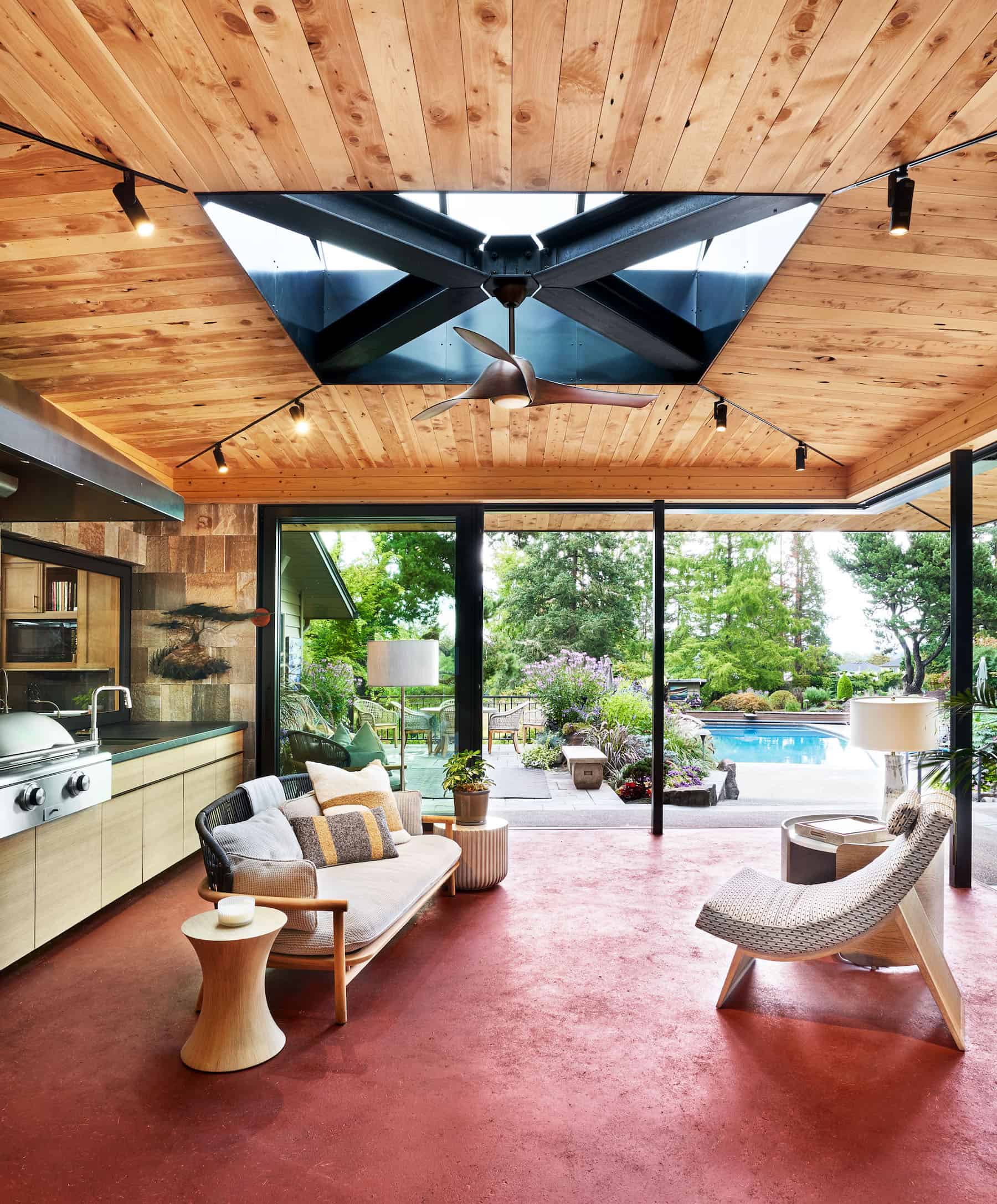 From its 13 helical earth anchors and concrete grade beams below ground to the 17-piece steel support skeleton and multi-sloped roof to the exactness of every finishing detail, we enjoyed the build almost as much as our clients love the inviting warmth of the finished space.