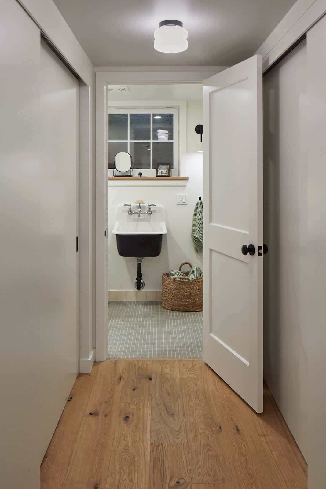 We were asked to finish out a dark, damp, and dated basement in a home built in the early 1900’s for a growing family. Adding in period correct design features with custom cabinetry, shiplap, and handmade tile in the bathroom brings the old-world charm in the basement to life.
